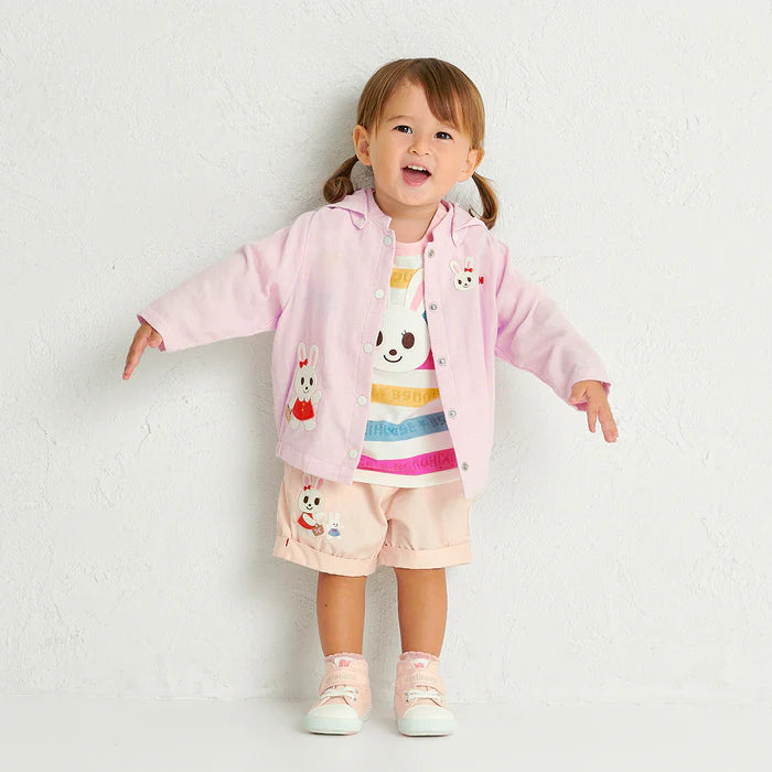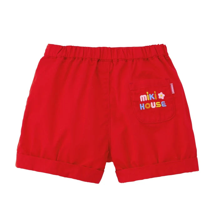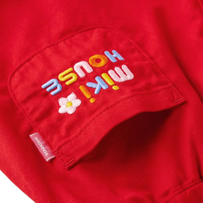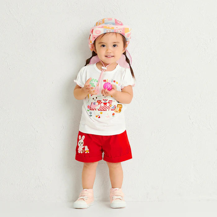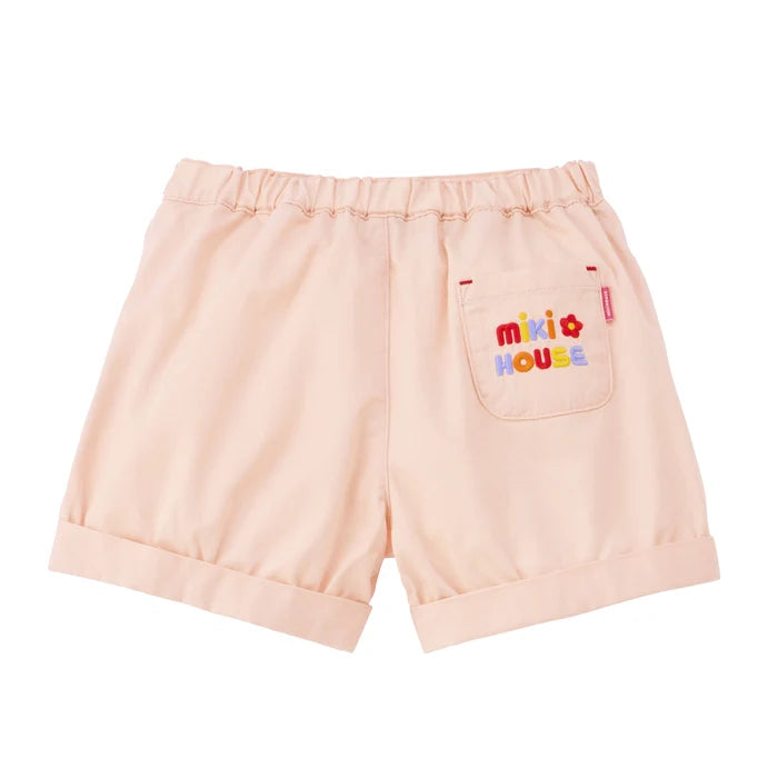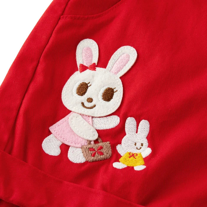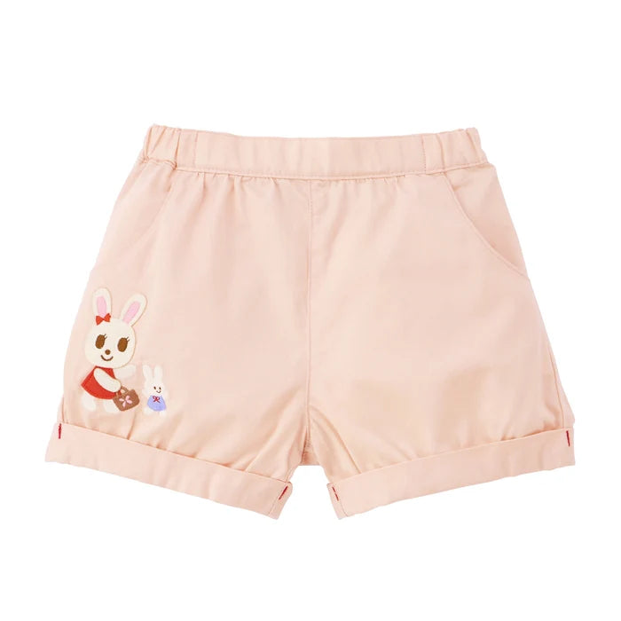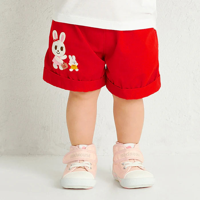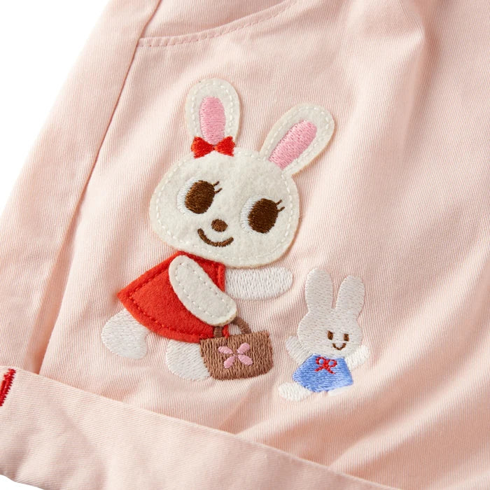 The bunny appliqué and colorful logo on the back pocket are typical of MIKI HOUSE.