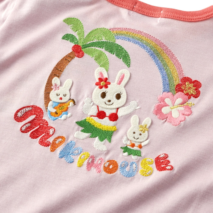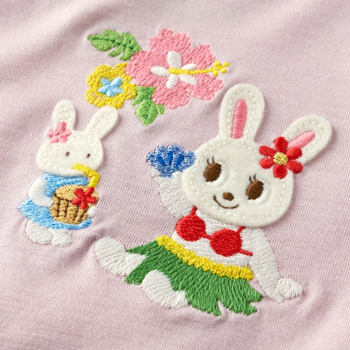 A large hula-dancing bunny is embroidered on the back, making this a gorgeous piece.